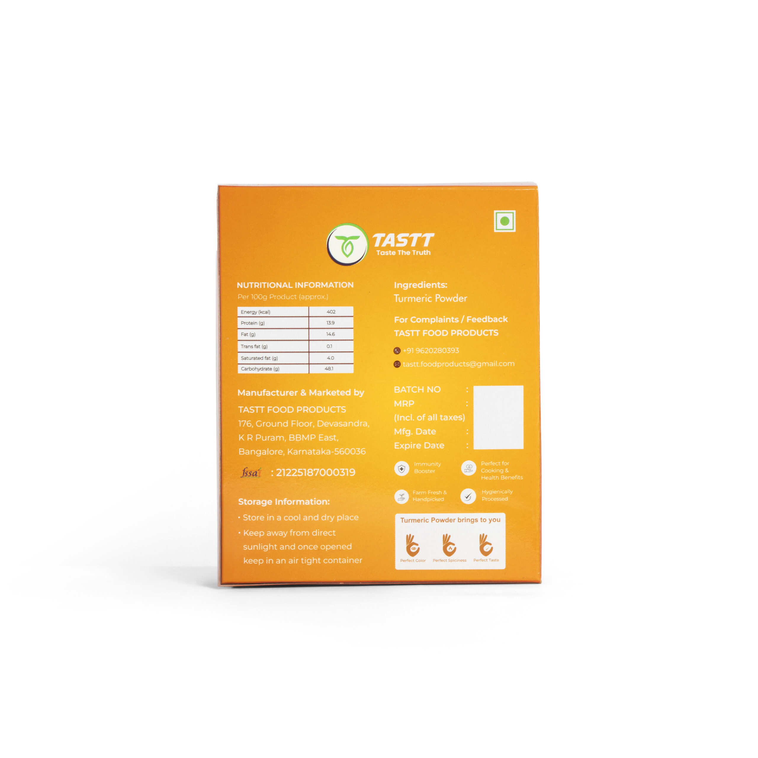 Discover the pure goodness of Tastt Products Turmeric Powder, a premium spice crafted to bring authentic flavor, vibrant color, and natural wellness to your kitchen. Sourced from carefully selected turmeric roots, our powder is finely ground to preserve its rich aroma, earthy taste, and high curcumin content, known for its powerful antioxidant and anti-inflammatory properties.